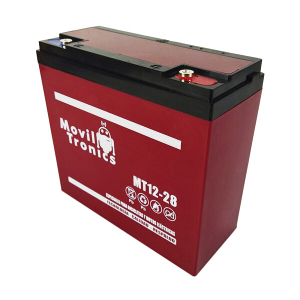 Batería GEL 12V 28AH ideal para uso en motos eléctricas y vehículos eléctricos en general, batería libre de mantenimiento, sin composición de agua o acido siendo batería sin componentes líquidos.